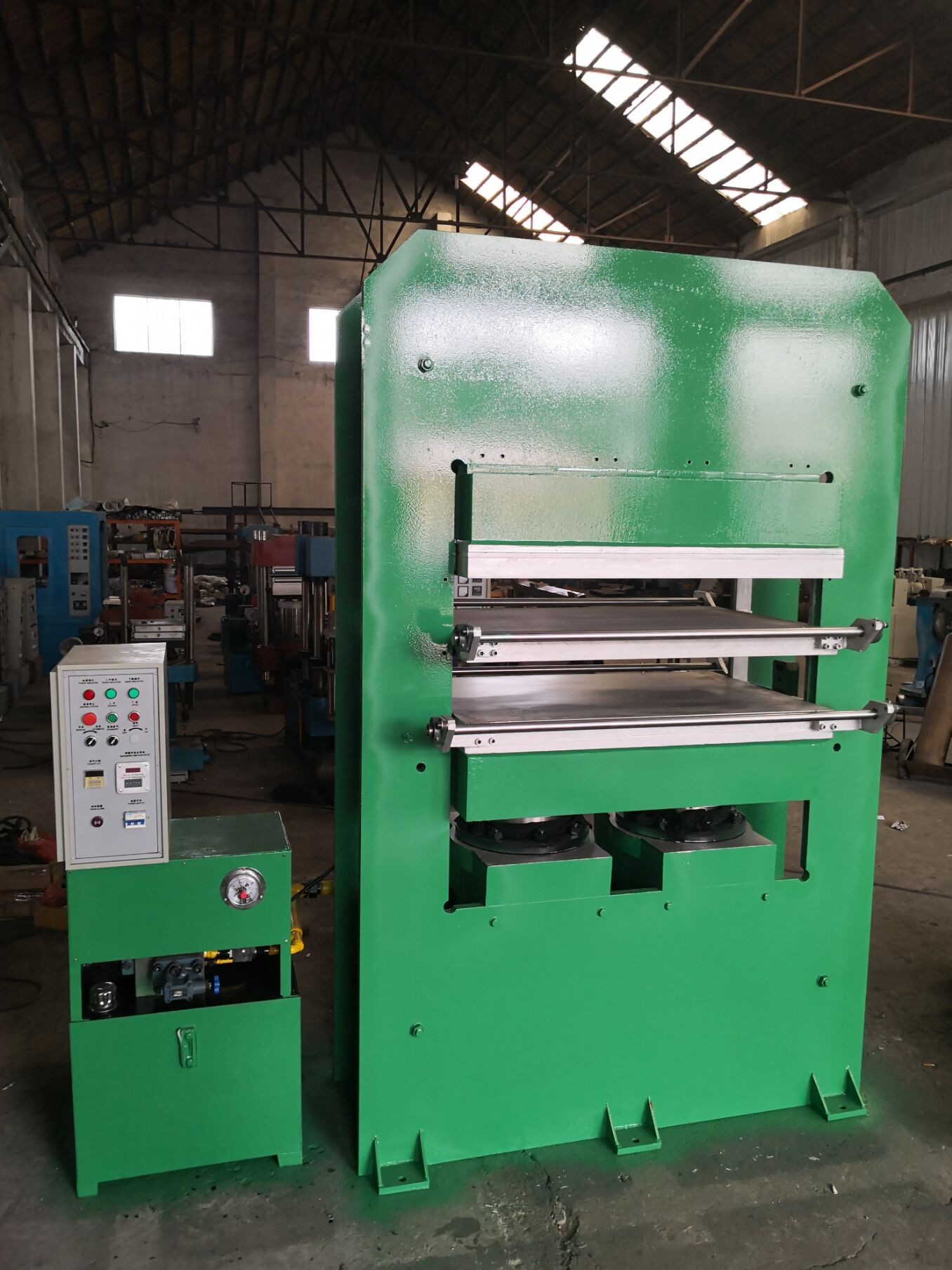 3.This type of machine is control by PLC , valcanization process can achieve many procedures for automatic control ,can automatically detect and adjust hot plate rubber machine.