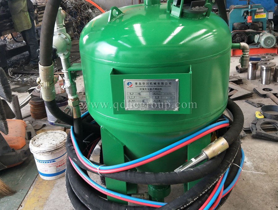 The working principle of the dust-free sandblasting machine (wet sandblasting tank) is the process of cleaning and roughening the surface of the substrate by the impact of high-speed sand flow. Using compressed air as the power, a mixture of water and sand is formed in the sandblasting tank, and then the spray material (glass sand is recommended) is sprayed to the surface of the workpiece at high speed by forming a high-speed jet beam. The impact and cutting action of the workpiece can remove the surface attachments of the workpiece, and at the same time make the cleaned workpiece relatively rough, increase the adhesion between it and the coating, extend the durability of the coating film, and also benefit the coating Leveling and decoration.