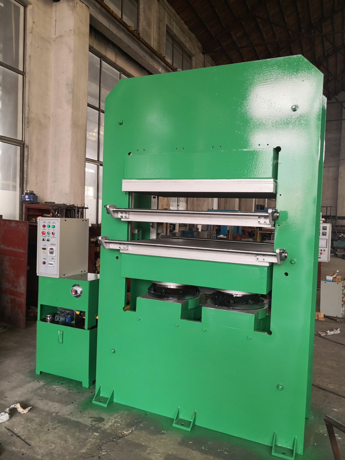 3.This type of machine is control by PLC , valcanization process can achieve many procedures for automatic control ,can automatically detect and adjust hot plate  rubber machine.